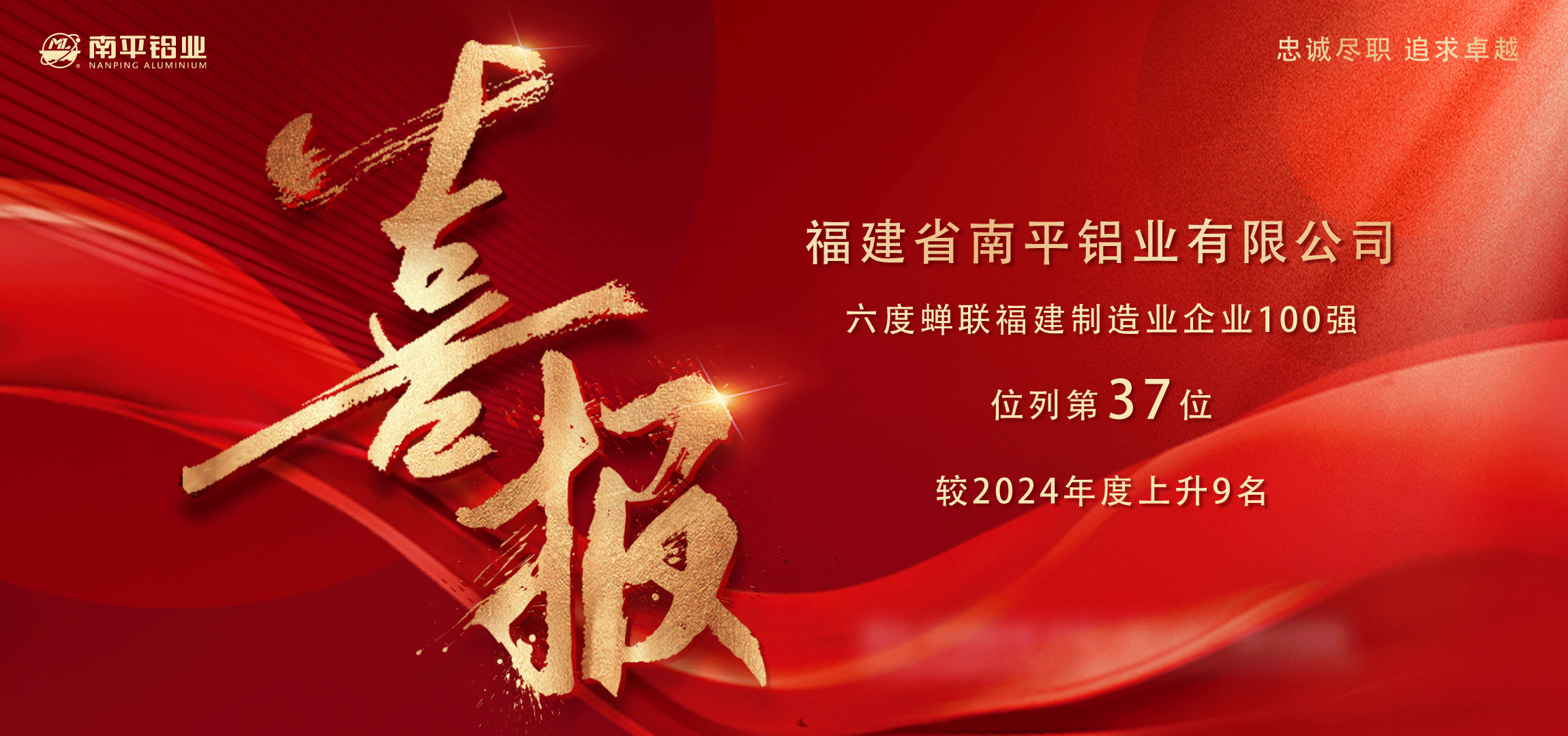 喜報!南平鋁業(yè)六度榮登福建制造業(yè)企業(yè)100強榜單